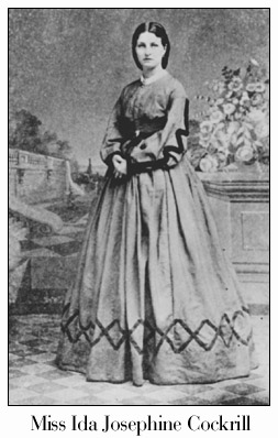 Idea. A member of the 1853 Hagans-Cockrill Wagon Train. "...now a resident of San Rafael." History of Sonoma Co. (1880). It appears that she had been divorced from J. K. Cannon, and in the 1870 and the 1880 Census she is shown living with her parents as Ida Cockrill rather than Ida Cannon. Obituary (from Rebecca Aileen Cockrill) notice reads as follows: |