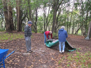 We had the pleasure of welcoming Richard Parmeter back to the work crew -- he makes the trek every year or two from Kansas City, MO. Thanks for coming, Richard, and for bringing out more of the Parmeter clan. And many thanks to Evelyn, who once again invited the volunteers to her home for a feast of soup, bread and cheese.