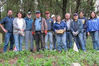 Dear Friends of Spring Hill Cemetery, Our beloved cemetery has had a very eventful, and successful week. We had the first workday of 2010 on Friday the 19th, and followed that up with a meeting last night in the Sonoma County Board of Supervisor's office at which our 2010 Spring Hill work plan was accepted by the PRAC. And if that weren't enough, Paul Schoch is making great progress on our "official" Spring Hill Map; we now have a Sonoma State history student interning with us this quarter; and the Sonoma County Historical Society has decided, pending details to be worked out, that they would be willing to contract with the county to handle burials. I feel we are off to a very productive start to 2010! Prepared by the weather forecast for rain on Friday, 11 of us gathered at the cemetery and were pleasantly surprised to find it overcast but dry for our entire work session. Although there were enough downed tree limbs to fill the small dump truck, Spring Hill weathered the winter storms with much less damage than in previous years. I am pleased to say our past efforts at cleaning up the cemetery are paying visible dividends. Not only was the winter debris much more manageable this year, but also we found little evidence of the type of partying that had plagued the cemetery in past years, with very few liquor bottles strewn around this time. In the process of clearing away storm debris and straightening stones, we found yet more fragments of stones. As Rick and Larry were working on straightening John Finley's monument, they uncovered quite a stash of marble fragments in the ground around the base. The third attached picture shows the finds as lined up on Keziah Finley's base. There is a very fragmented Finley stone (William Finley) close to the new discovery, but interestingly enough, none of the "new" pieces belong to that stone. We will have to take inventory of all our fragments at the next workday and try to find just where they fit. Another mystery is why there would be so many marble pieces buried at the base of John Finley (he died and his monument presumably was erected in 1910). Patsy and Bob made the most exciting discovery of the day. In raking the north end of Robertson area, they came across a fairly large piece of inscribed marble hidden under debris at the base of a tree. The fragment is shown in the last attached picture, and Patsy is also holding it in the group picture. The discovery is a middle piece to Franklin Seymour McReynolds' stone, a stone whose base and footstone lay half way across the cemetery from where the piece was found. Franklin Seymour McReynolds' footstone was uncovered at our October 2009 workday, and that recap gives a brief write up of the family grouping. Although we have detailed much of the interior of the cemetery, these recent finds show that there may still be much to discover around the perimeter of the cemetery. We were joined in our Friday labors by Jennifer Jaffee, a student working on a master's degree in history at Sonoma State University. Much to my delight, she has asked to intern with us this term. I brought Jennifer a binder with Spring Hill interconnections and burial lists. In addition to joining our workdays through May, she is planning to research SH obits in the newspaper archives at the Sonoma County Annex in Santa Rosa. Welcome, Jennifer!! Our main focus for the year is to finish straightening our monuments, and to reset stones into the bases leveled last year. We plan to finish straightening those few monuments that still need it at the next workday. Brad Deval has kindly offered to research resetting stones into their bases and to liaise with Gary Galeazzi in plotting out for us just how best to accomplish the resetting task. I have heard back from Paul Schoch, who is very kindly helping us create an official Spring Hill Map. He plans to have the preliminary map before the March 12th workday, at which time we will field edit the map and hopefully resolve any data conflicts. Corrections will be noted and input into the CAD program, and a final map produced. Many Western Sonoma County Historical Society members, Sonoma County Historical Society members, and Robertson descendants joined me in the Sonoma County Board of Supervisors' office yesterday evening for the Parks and Recreation Advisory Committee (PRAC) review of the 2010 SH workplan. The PRAC is composed of 5 members, one appointed by each of the five Sonoma County Supervisors. This was the first time I had met any of them, and they all seemed dedicated, wholehearted supporters of Sonoma County Regional Parks. PRAC meetings are held monthly. Mary Burns and Regional Parks produce an agenda and recommendations. These are brought before the members of the PRAC for their approval. Judy Erickson of Regional Parks presented an enjoyable Power Point presentation of SH to acquaint PRAC members with our cemetery. It was fun to see Spring Hill through another's eyes. I spoke briefly to say that the Friends were a diverse group of those interested in supporting the cemetery, drawing together historical society members, descendants, neighbors, and people from the wider community. I also mentioned that the most recent burial took place in 1996, and that SH is a living cemetery of Sonoma County pioneers and their descendants. The cemetery has never been closed, and there are descendants currently expecting to join their spouses and ancestors one day in Spring Hill. Jeremy Nichols, president of the Sonoma County Historical Society, spoke after me, adding pending resolution of a few details, the SCHS is prepared to contract with the county to handle the burial aspect of SH. The PRAC members asked a few questions of both Jeremy and I, and then voted to accept our 2010 work plan, with a slight modification to the burial policy wording to say we would continue to work with Regional Parks to establish a burial plan in 2010 (rather than finalize a burial plan). Leaving the cemetery on Friday