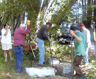 Dear Friends of Spring Hill Cemetery, Fog greeted us Friday morning as we began another rewarding day at the cemetery. Regional Parks had come by in the interval between our last two workdays and removed hazards we reported in July: they cut down the dead, small SOD tree in the north east section of the cemetery, sprayed for yellow jackets, and took down the "widow maker." We began our work session by cutting up and hauling the SOD downed tree and "widow maker" to the dump truck; by the end of the morning the truck was filled with gathered debris. Additionally, we reset 6 more bases, polished up the Spring Hill sign, discovered another piece to one of our headstones, and found one more complete stone. Twelve of us gathered for the morning's labor, and 14 of us attended the afternoon meeting on Spring Hill Cemetery scheduled by Regional Parks. All in all, I am delighted to report a very successful day. Many thanks to all of you who joined in. Much progress was made in the arduous job of resetting bases. We focused on those bases at the eastern edge of the cemetery, resetting those of Osmond Fairbanks, his brother Frank, Mary A Rogers, and the very large, difficult base for Daniel Crayne. Bases for Mary Ford and James Erb (in the northern part of the cemetery) were reset as well. Some of these bases are extremely heavy, and with the dry, hard, August ground, those tackling the task deserve extra praise. I think you can see from the attached picture just how strenuous a task resetting bases can be. I want to thank our very generous neighbors to the south, the McDowells, for the critically important use of their water for this work. To date 19 of our bases have been reset. I have been in contact with Gary Galeazzi, owner of North Bay Monument in Rohnert Park - the headstone expert and miracle worker who has pieced together and repaired Spring Hill's broken stones. He says he will come by the cemetery in the next week or two to review our progress, subsequently giving us instructions on where to go from here. He has also generously offered to continue his services in those areas of repair / resetting beyond our volunteer abilities. While raking around the Robertson graves, Patsy's rake encountered yet another chunk of James L Parmeter's headstone. As you can see from the attached photo, poor James' stone was shattered at some time in the past. The newly rediscovered piece fits just on top of the pieces we have assembled so far. It is particularly exciting to find a piece with a bit of his death date. James was the son of Jefferson D. Parmeter and Lavinia Robertson Parmeter, both of whom rest near him in the cemetery - his mother just south of him and his father just south of her. [correction: Jefferson D Parmeter was James L Parmeter's brother (not father). James L and Jefferson's father was John Spencer Parmeter] James died November 16, 1871 when just 8 years of age. Dick made our second discovery; Mary Catherine Small's stone. Mary Catherine was listed on the DAR Spring Hill burial list, but before Friday we had found no trace of her. There are 5 inter-related Camron / Small / Martin / McNamar / Thompson stones that should be at Spring Hill: Darius D Martin, Martha Thompson Small, Mary Catherine Small - plus two we have yet to find a trace of, Sarah Camron McNamar and her daughter Eliza. These are all among the earliest Spring Hill graves, dating from 1853 to 1862. The newly uncovered stone was where we expected to find it - just to the east of her mother, Martha Thompson Small. This group of connected graves has strong ties to the Cumberland Presbyterian Church and to the earliest origins of the cemetery. I will continue with Mary Catherine's stone, the Cumberland Presbyterian Church, and the Thompson / Small / Camron connections at the end of this email. But as it is rather long and may not be of interest to all, I will first recap the meeting we had with Regional Parks following our stint at the Cemetery. As mentioned earlier, 14 of the "Friends" met with Mary Burns, Jim McCray, John Ryan, Allan Darrimon, and Jerry King of Regional Parks; and with Susan Upchurch, staff assistant to Spring Hill's District 5 supervisor, Efren Carrillo. Last week I forwarded to all of you the documents Mary Burns had had drawn up - an agenda, volunteer cemetery worker job description, and a discussion document, "Friends of Spring Hill Cemetery Regional Parks' Plan for Volunteer Maintenance Activities." Regional Parks, as I have discussed in previous recaps, is under considerable budget stress, and are trying to formalize some of the issues around Spring Hill in part to better plan their limited resources. Introductions were made, and then Mary Burns asked that we try to cover areas of agreement first, putting contentious issues towards the end of the meeting. To that end, and with the exception of future burial policy, we reviewed most of the rest of the "Plan for Volunteer Maintenance Activities." Ms. Burns explained some of the terms - the Parks and Recreation Advisory Committee (PRAC) is an appointed body of 5, with each of the 5 county supervisors appointing one of the members. The "Director /designee" term refers to the Director of Regional Parks (Mary Burns) or her designee (likely to be Jim McCray). She went on to explain that they are requiring "prior written [Ms Burns said that email counts as written] approval" before such items as changes or improvements to paths because Parks must ensure they follow legal code (with paths they may need to consider the Americans with Disabilities Act). Allan Darrimon was the appointed scribe for the meeting, so will be coming out with comprehensive minutes. But outside of the burial issue, I feel confident that all the other issues will be quickly resolved. We then turned to the future burial issue. It is hard to distill the discussions into a few sentences, but as it is still an open issue, I will try to be brief. Mary Burns said after considering the issue, she