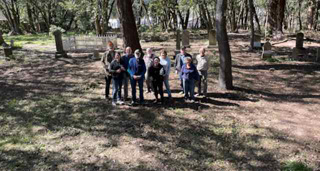 The volunteers have temporarily cleared the cemetery floor, but we did not attempt to permanently remove the vinca and other vegetation. I expect our usual lush growth will be back as soon as the rains return. Given we have this rare situation of a more accessible cemetery floor, we are also proceeding with more detailed metal detecting. Kirston did a bit of that yesterday, as we were clearing areas, but Mike and his son Peter plan to do a more extensive search this weekend. They will be using advanced metal detectors used on archaeological sites. Exciting times!