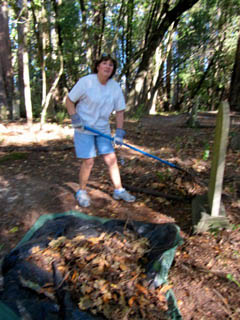 Dear Friends of Spring Hill Cemetery, Six of us gathered at Spring Hill this morning. The skies were sunny and bright, but there was a very strong offshore breeze blowing, making conditions extremely dry. Our main task was to rake the paths (picture 2) , but we also had discussions on what to do with some of our broken headstone pieces (picture one, showing pieces belonging to Edwin Davis McReynolds and Franklin Seymour McReynolds). We filled our dump truck with the very dry debris, and left the cemetery in good shape. Jeremy brought a preliminary mock up of a display to be put on the back side of the Spring Hill sign (picture 3). The goal is to provide on site information on burials and their locations for those visiting the cemetery. Let Jeremy or me know if you have suggestions. The current plan is for me to take the mock up home and work on updating it. When complete, Jeremy plans to get some sort of Plexiglas case for it (to be installed on the back of the sign). We have finally solved the mystery of Spring Hill's two William Lowery burials. William H Lowery is well researched - we have some of his descendants active in the Friends of Spring Hill Cemetery. His stone is located next to James Erb on the north end of the cemetery. But we have long known of a second William Lowery in the northwest corner of the cemetery. This second William's stone is broken, with a matching broken stone next to it (picture 4). Due to the similar names, I and Spring Hill's other Lowery researchers have long tried to link the two Williams, assuming they must connect, but new research shows that they do not. Newspaper articles on the probate of William Lowery's estate, in conjunction with census records, show that our second William Lowery (Lourey) was born around 1811 in Ireland, and died November 19th, 1867 in Bodega. He was a farmer, and married Elizabeth, also born in Ireland. It is unknown at this time when/where they married, or when they came to the United States. Elizabeth was 12 years William's junior. There were no children listed with them in their 1860 Smith Ranch Bodega Census listing. William's estate went through a lengthy probate procedure. In October of 1869 it was determined necessary to sell all of his real estate to pay outstanding debts. The parcel in question had a picturesque description, being tract No. 13 of the Rancho Estero Americano followed by an extremely lengthy boundary description, including things like a double wild lilac 12 inches in diameter, stakes marked "JOF", middle of creeks, etc. The sale, to the highest bidder, was to take place January 3rd, 1870. Administratrix of the Estate of Wm. Lowery was his widow, Eliza Lowery. Eliza Lowery is found in the 1870 Bodega census, living alone. It is quite possible that the headstone next to William is that of his wife, Eliza. It is a broken stone, with the only visible writing "died February 1, 1878 aged 58 yr." This would roughly fit in with Eliza's birth date, working backwards from her 48 year reported age at the 1870 census. Our final 2013 workday is set for Friday, November22nd. Please mark your calendars and come join us! Best Regards, Sue