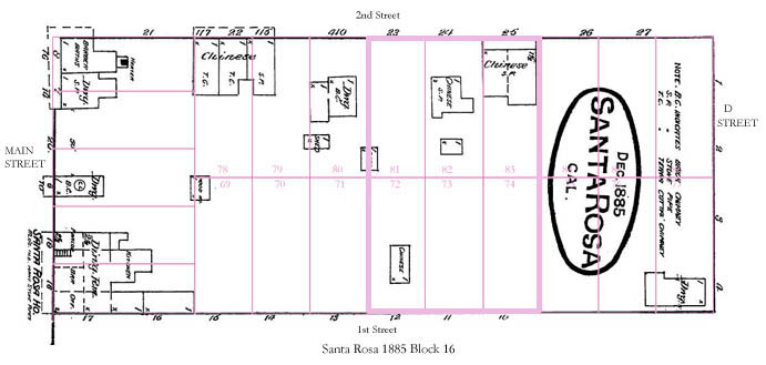 81, 82, and 83, in Block 16, in the "Chinatown" section of Santa Rosa, on