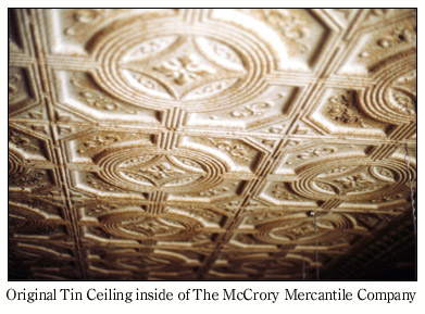 Planters Mercantile Company was originally known as the McCrory Mercantile Company (there is no mention of it being called the McCrory Concrete Building). There is a history of the McCrory family in Rivers and Roads and Points in Between, Vol. XI, No. 1 (Augusta: Woodruff County Historical Society, Winter, 1983), "The McCrory Family in McCrory," by Vernon Paysinger, p. 2. With this article there is a photograph of the inside of the McCrory Mercantile in 1918, however it does not show it having a mezzanine. Perhaps it was in the back of the building. This store was renovated in the 1990's and converted into a lawyer's office. The original "McCrory Mercantile Co." was kept on the front of it. I was inside this building in 1997 and the new owners believed that there had once been a hat shop in back of the building. The original ceiling could also still be seen in the back. |